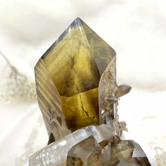 頂級亮皮茶黃骨幹水晶原礦帶二次結晶