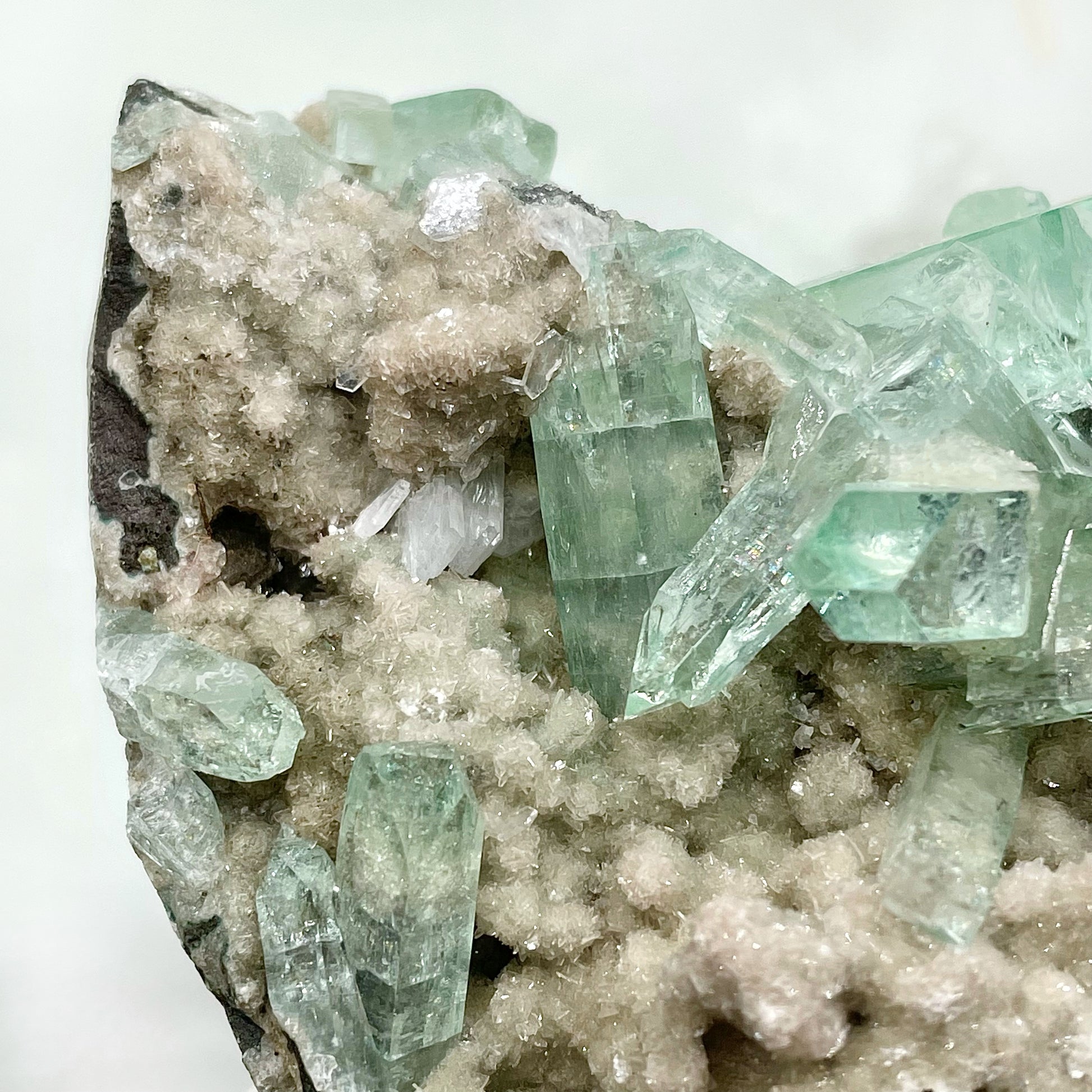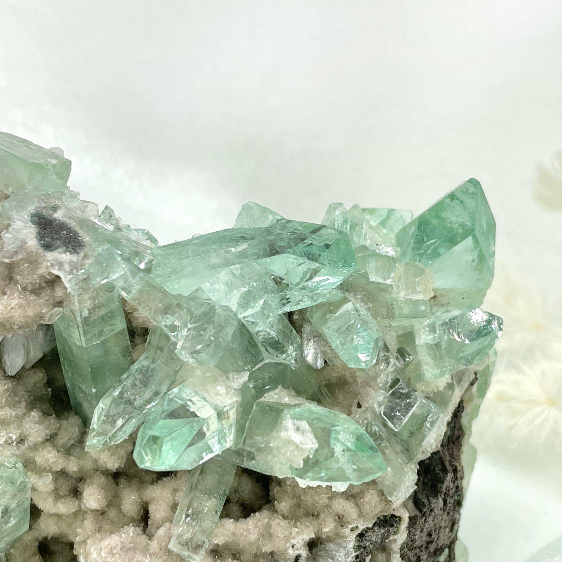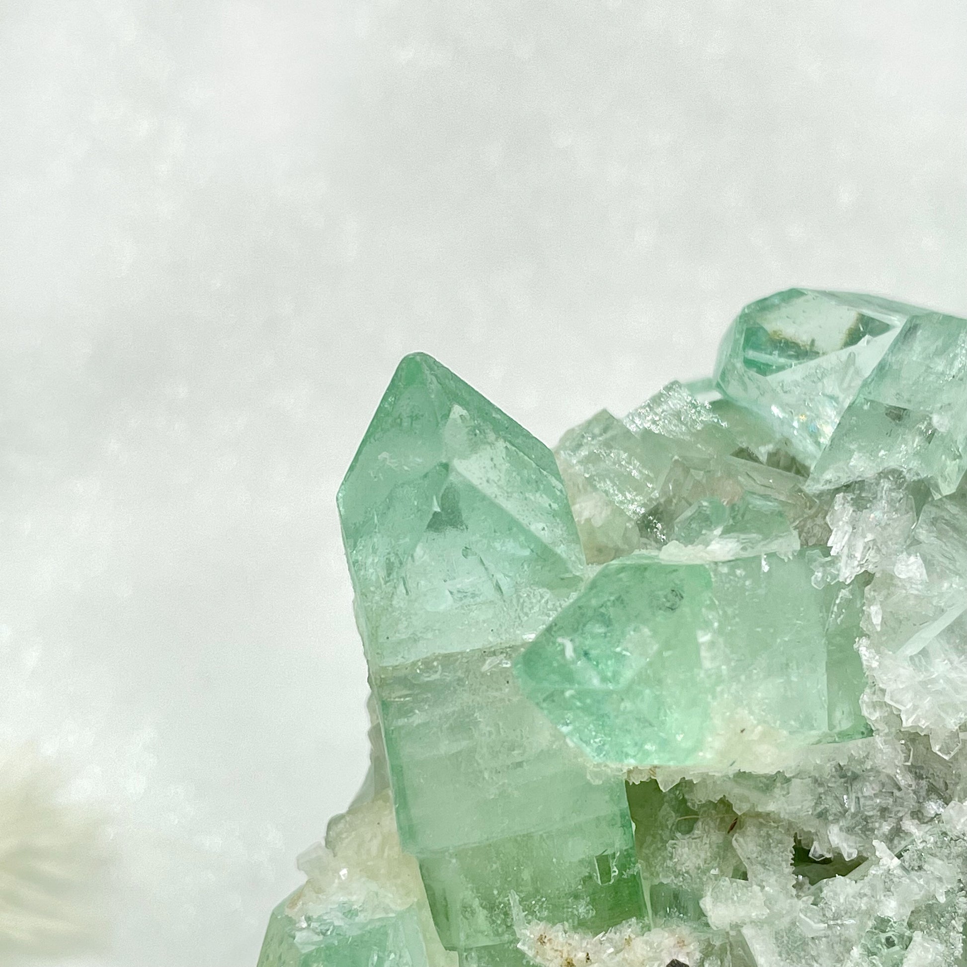 春意盎然的一抹冰透綠——極難得一見的Fluorapophyllite標本綠魚眼石共生礦✨